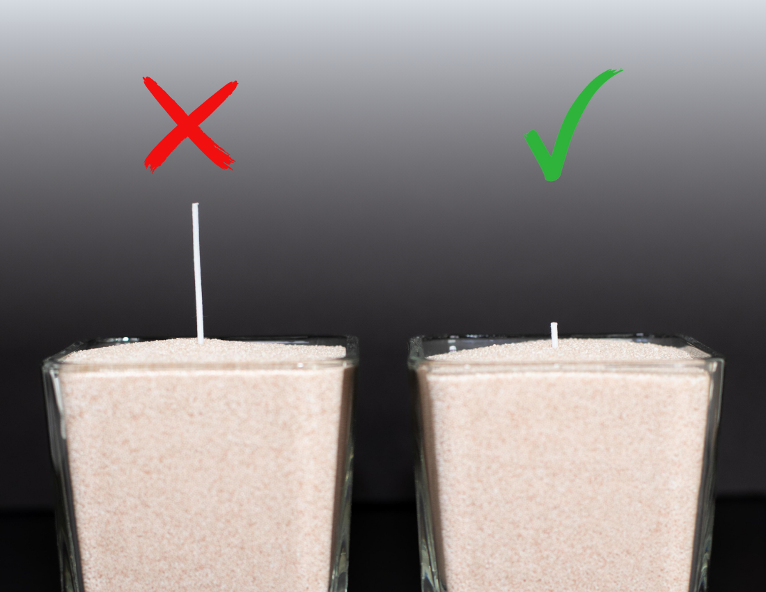 Nejdůležitější je udržovat knot mimo okraj a dno nádoby. To znamená, že byste měli mít kolem knotu alespoň 2 palce perel (min. 4“ široká nádoba) a pod knotem alespoň 1 palec perel.